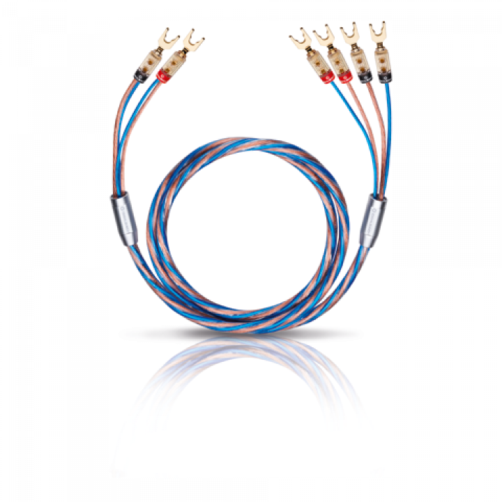 &Scaron pičkový bi-wiringový kabel vnitřní konstrukce 2 x 2,5 mm2 postří břený + 2 x 4 mm2 měděný , vyrobený z bezkyslí katé mědi, osazený vidličkami XXL Fusion.