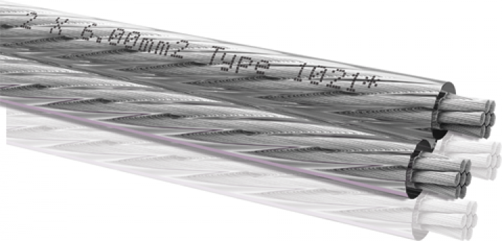 Vysoce kvalitní stereo reproduktorový kabel pro připojení zesilovačů nebo vý konový ch zesilovačů s reproduktory - průřez 2x6mm pro vý kon zesilovače až do 300 wattů na kaná l.