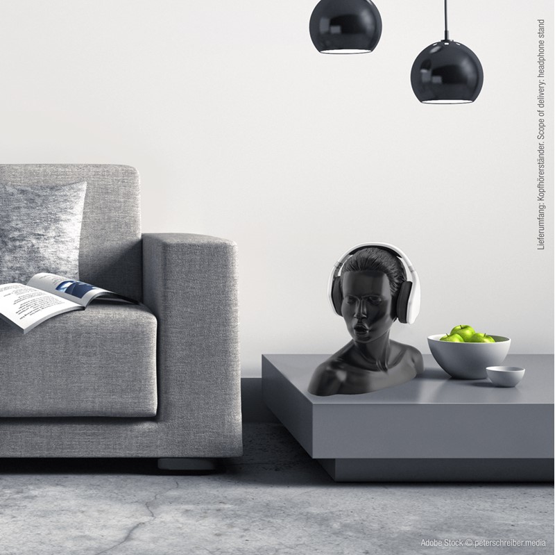 Rovnoměrné rozložení hmotnosti stojanem pro sluchá tka zaručuje, že hlavový most ani nau&scaron ní ky nejsou vystaveny silné mu tlaku.