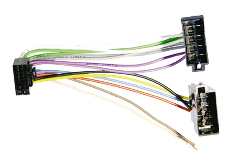 Kabelové svazky pro autorádia s originálním konektorem na straně autorádia a ISO konektorem na straně automobilu. Délka vodičů 12-13cm, Barevně značené vodiče s popisem.