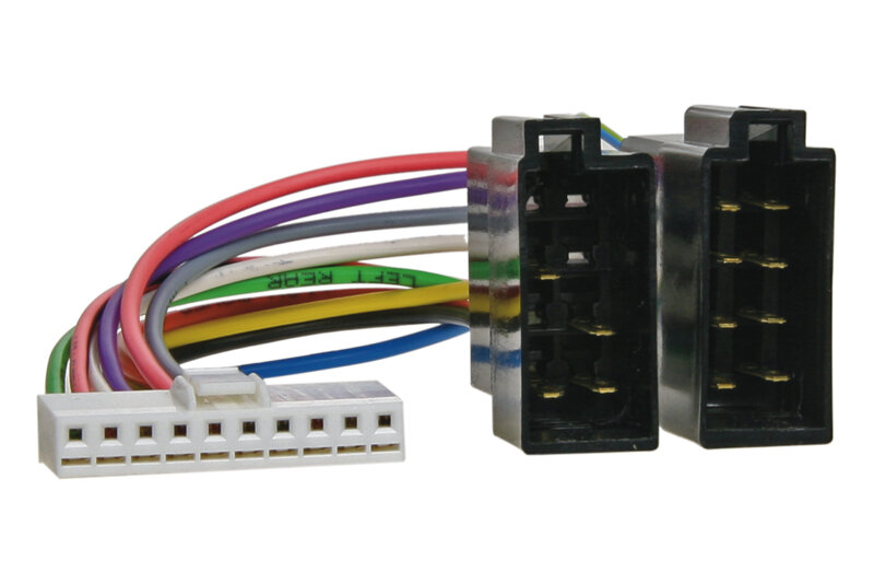 Kabelové svazky pro autorádia s originálním konektorem na straně autorádia a ISO konektorem na straně automobilu. Délka vodičů 12-13cm, Barevně značené vodiče s popisem.