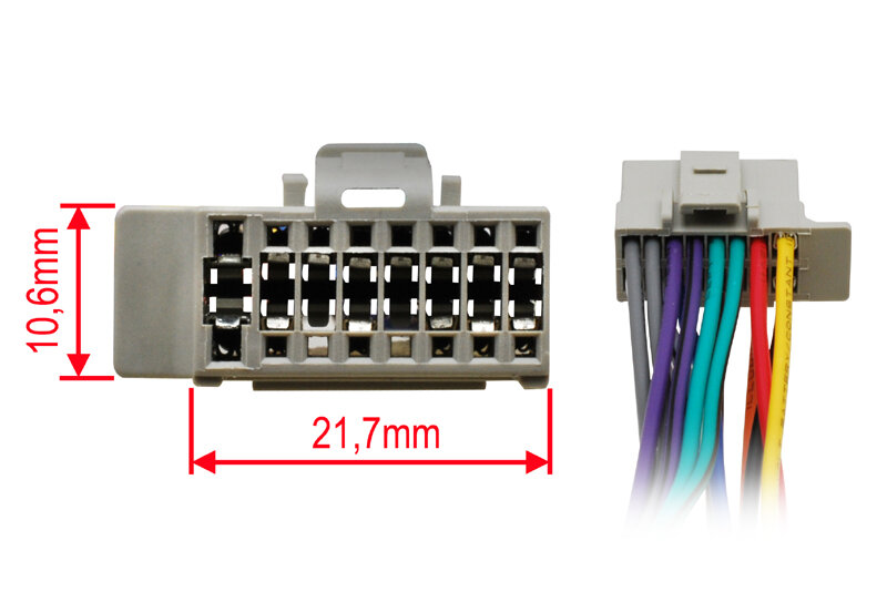 Kabelové svazky pro autorádia s originálním konektorem na straně autorádia a ISO konektorem na straně automobilu. Délka vodičů 12-13cm, Barevně značené vodiče s popisem.