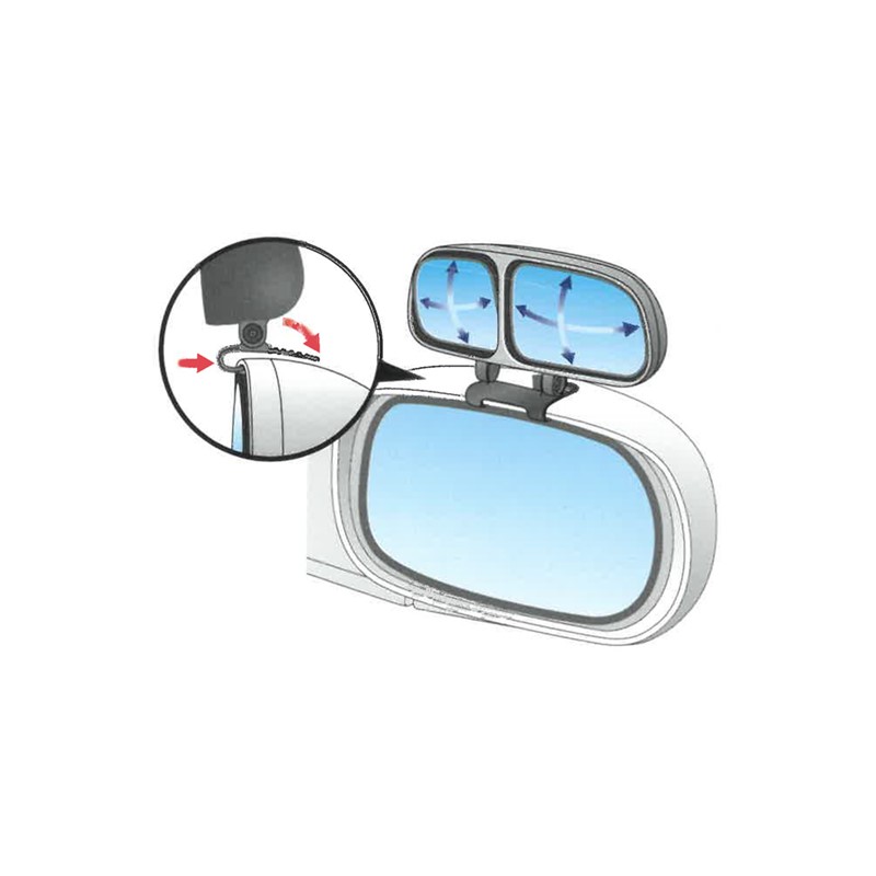 Přídavné zrcátko výrazně rozšiřuje výhled z vozidla - o tzv. mrtvý úhel. Velké zorné pole díky vydutému tvaru zrcátka. Připevňuje se na stávající vnější pravé zpětné zrcátko pomocí samolepící plochy.