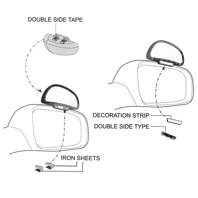 Přídavné zrcátko výrazně rozšiřuje výhled z vozidla - o tzv. mrtvý úhel. Velké zorné pole díky vydutému tvaru zrcátka. Připevňuje se na stávající vnější zpětné zrcátko pomocí samolepící plochy.