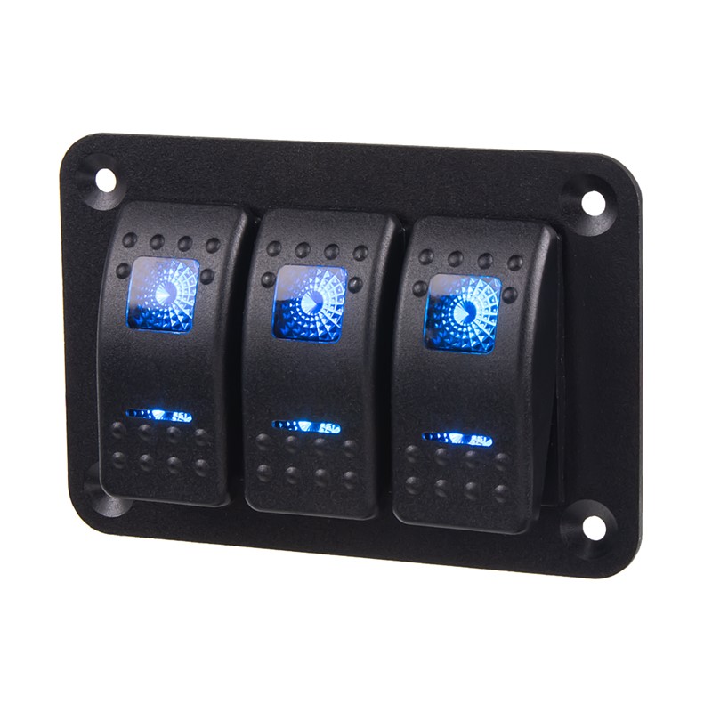 Krátký popis Panel s 3x spínači Rocker.   Technické parametry: • napájecí napětí 12/24V • zatížení spínačů: max.