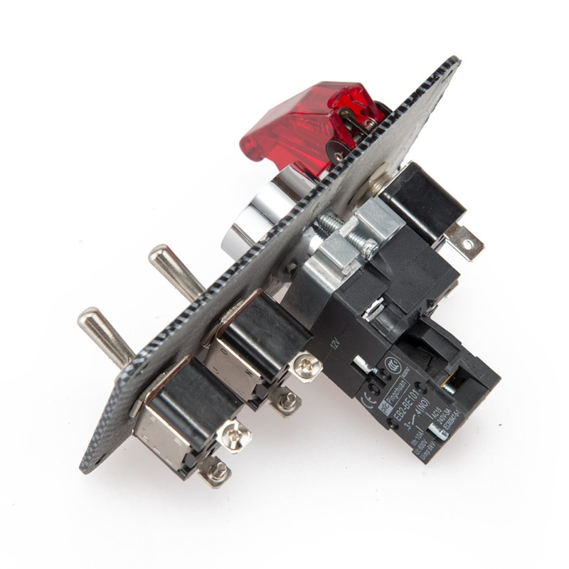 Univerzální panel s 3x spínači + tlačítko START v karbonovém stylu.