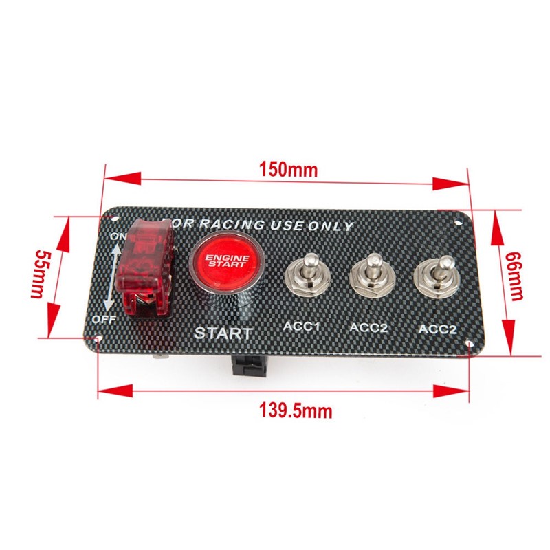 Univerzální panel s 4x spínači + tlačítko START v karbonovém stylu.