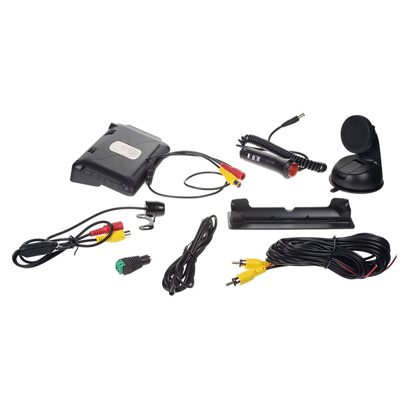 - balení obsahuje: monitor, napájecí kabel s CL koncovkou, DC napájecí kabel volné fousy, redukce DC, spojky kabelové, držák na palubní desku, držák s přísavkou a magnetem