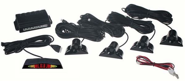 Parkovací systém s LED displejem, zadní s 4 čidly je určený pro detekci překážek za vozidlem. Speciálně tvarované senzory jsou určeny pro vnější montáž (např. pro vozidla s kovovými nárazníky).