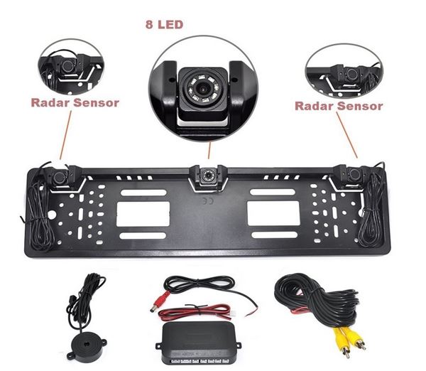 Kamera a čidla parkovacího systému jsou umístěna v rámečku pod SPZ.
