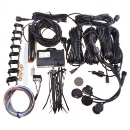 Systém obsahuje 4 ks snímačů s různou délkou kabelů od 2,5 do 9 metrů, řídící jednotku, displej s vestavěným bzučákem, 4x podložku snímačů 0°, 4x podložku snímačů 12°, drobný instalační materiál.