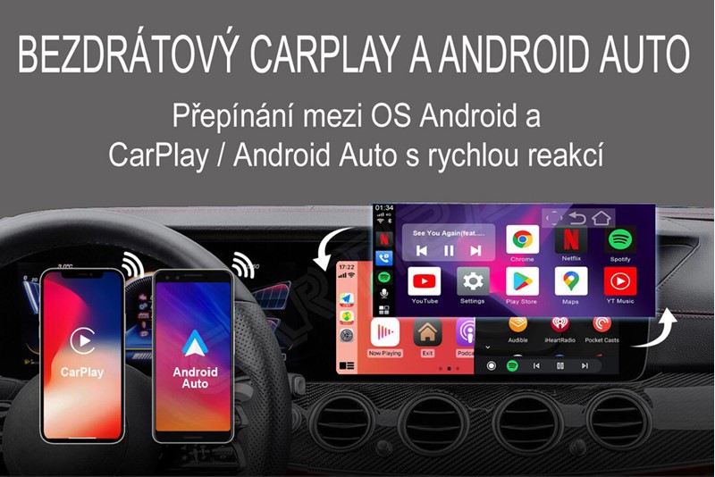 - integrované bezdrátové funkce Apple CarPlay a Android Auto