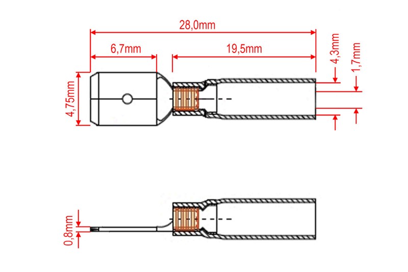 - pro konektory faston samice 4,8mm o tloušťce 0,8mm