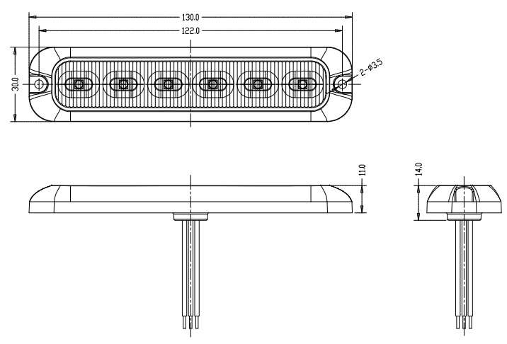 Přídavné červeno-modré výstražné LED světlo pro externí povrchovou montáž.