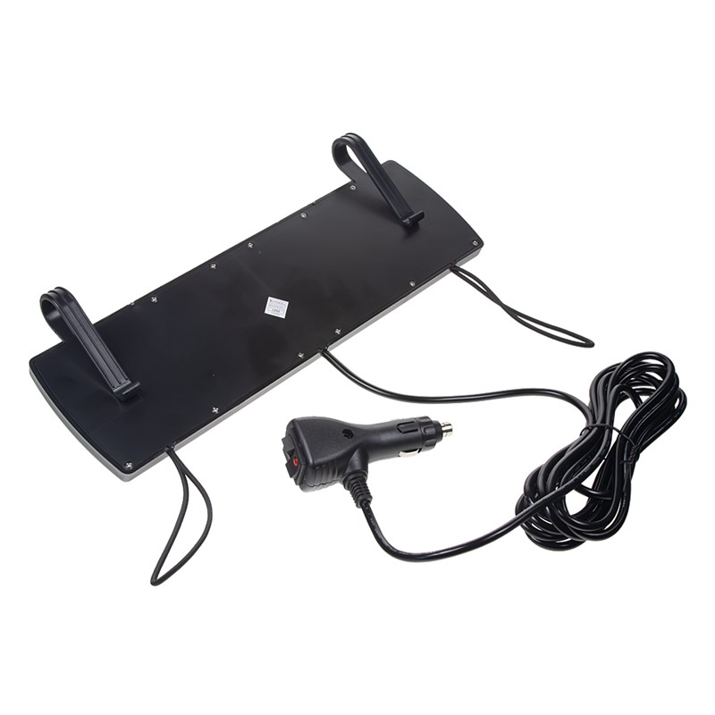 Krátký popis Přídavné červeno-modré výstražné LED světlo pro vnitřní montáž (montáž na sluneční clonu).   Technické parametry: • 15 režimů výstražného problikávání • 48x SMD LED 5730 • dlouhá životnost • upevnění na klip • napájecí kabel s CL zástrčkou (délka 3m) • napájecí napětí 12 - 24 V • rozměry: šířka 300 mm, výška 90 mm, hloubka 16 mm