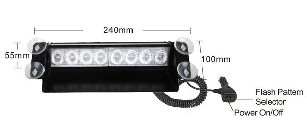 Krátký popis Přídavné červeno-modré výstražné LED světlo pro vnitřní montáž.   Technické parametry: • 8x LED 3W • 26 režimů problikávání • minimální odběr proudu • možnost pevné montáže nebo pomocí přísavky na sklo • napájecí kabel s CL zástrčkou • napájecí napětí 12-24 V • rozměry 233 x 53 x 100 mm