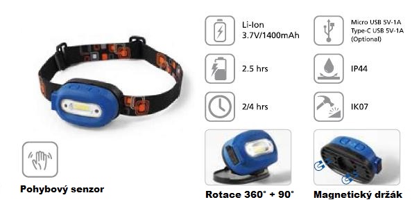 Čelovku lze také lehce sejmout z držáku a díky vestavěným magnetům lehce přichytit na různé kovové povrchy.