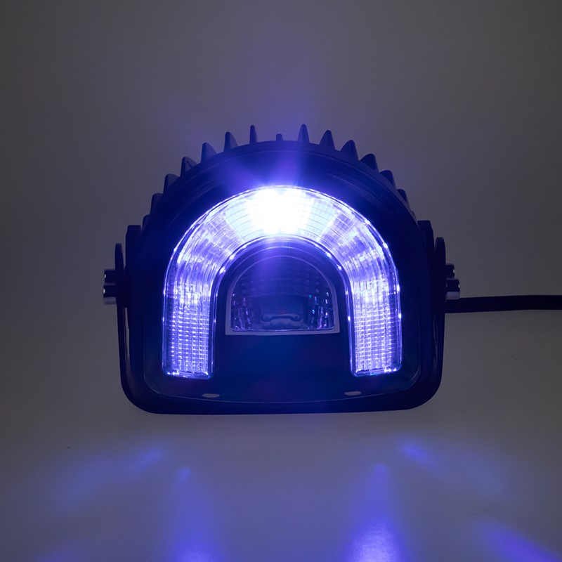 Přídavné modré výstražné LED světlo pro externí montáž. Světlo je určeno např. pro montáž na vysokozdvižné vozíky, poté upozorňuje na pohyb vozíku modrým obloukem na zemi před nebo za vozíkem + navíc je vybaveno výstražným blikajícím světlem oranžové barvy.