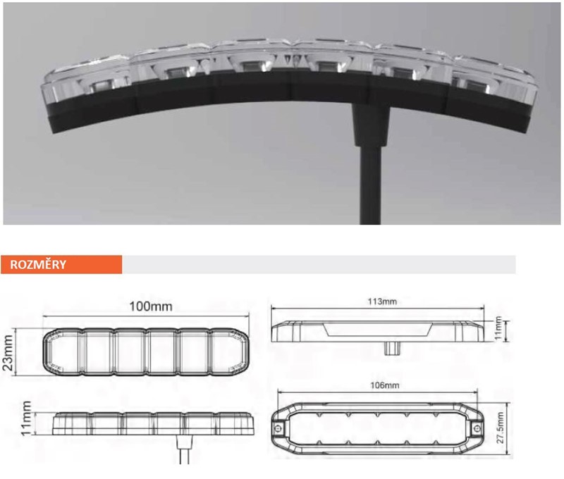 Přídavné ohebné silikonové oranžové výstražné LED světlo pro externí povrchovou montáž.