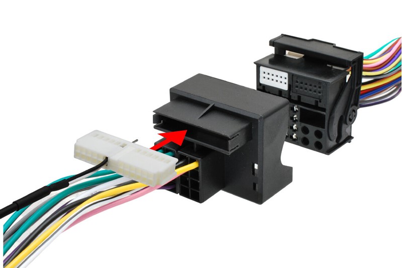 Propojovací kabel pro připojení OEM parkovací kamery k dodatečně instalované navigaci nebo autorádiu se vstupem pro parkovací kameru: