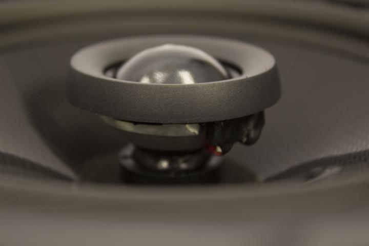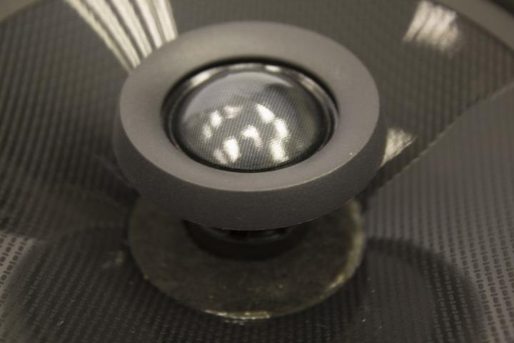 Pří jemný m prvkem Q Acoustics je možnost volby krycí mří žky, přičemž reproduktor zůstá vá kulatý .