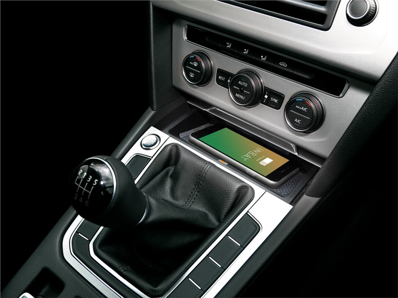 Nabíjecí přihrádka pro bezdrátové dobíjení mobilních telefonů prostřednictvím technologie Qi.