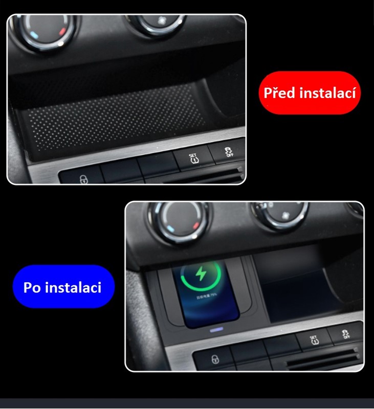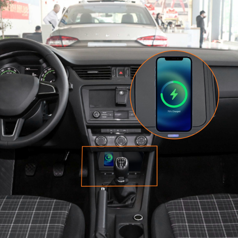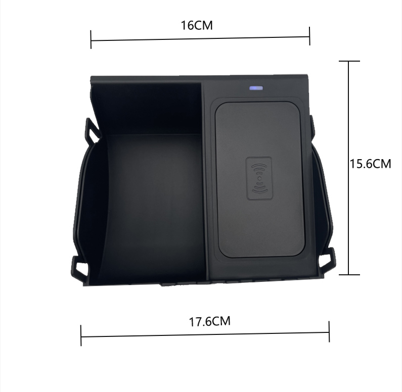 Nabíjecí přihrádka pro bezdrátové dobíjení mobilních telefonů prostřednictvím technologie Qi.