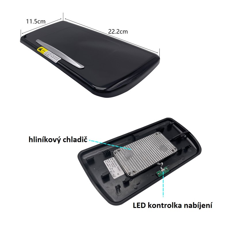 Krátký popis Nabíjecí přihrádka pro bezdrátové dobíjení mobilních telefonů prostřednictvím technologie Qi.
