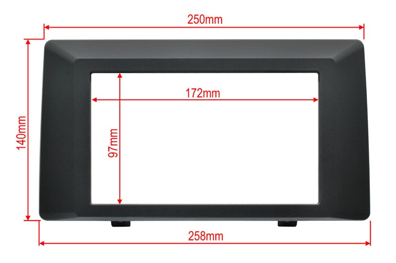 Rozměry otvoru odpovídají rozměrům čelního panelu 2DIN autorádií Macrom, Pioneer, Kenwood, Alpine, Clarion....