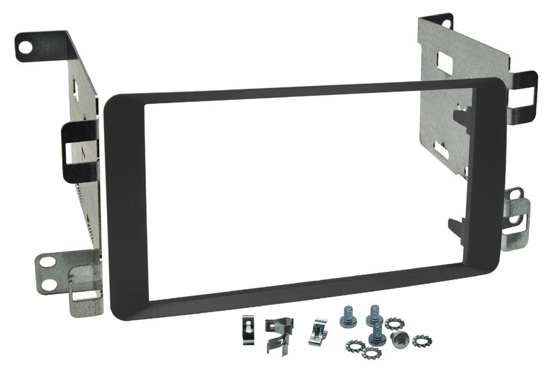 Obsah balení: plastový 2DIN rámeček, boční kovové úchyty, šrouby