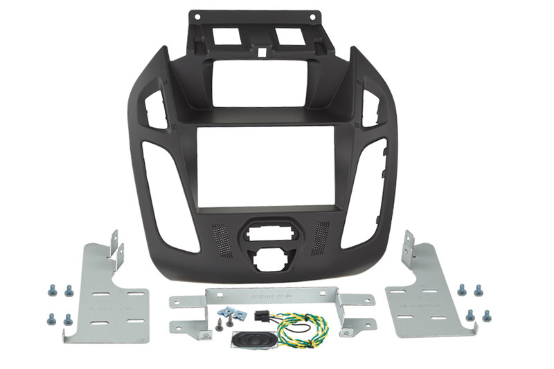 Plastový adaptér, boční kovové úchyty autorádia, kovový úchyt displeje, instalační materiál.