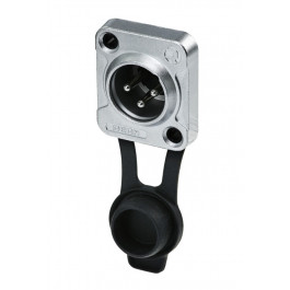 3-polový konektor XLR samec v provedením IP65 odolným vůči prachu. Pochromované puzdro, pocínované kontakty.