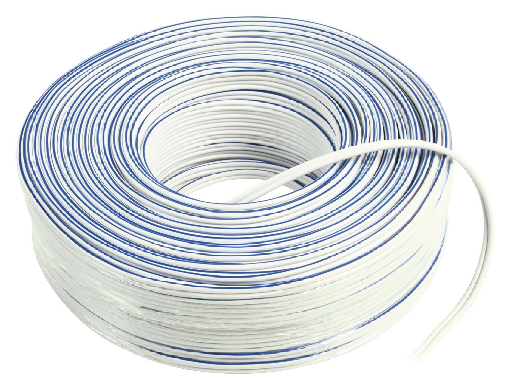 Krátký popis repro kabel, průřez 2x2,5mm2, bílý - značený (modrý pruh), prodej po metrech, cena za 1m
