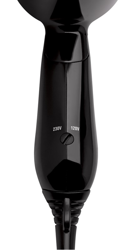 Krátký popis Cestovní vysoušeč vlasů • skládací konstrukce • příkon 1200 W • 2 rychlosti / 2 teploty • otočný kabel 1,5 m • koncentrátor a duální napětí