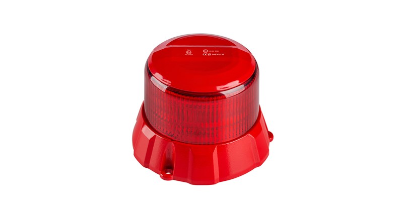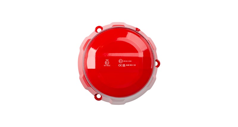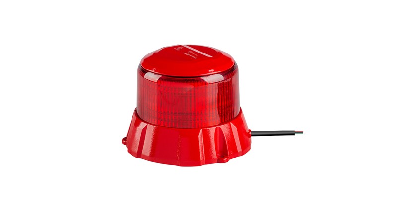 Profesionální robustní červený LED maják s červeným hliníkovým obalem a výrazným výstražným efektem. Určen pro pevnou montáž pomocí šroubů.