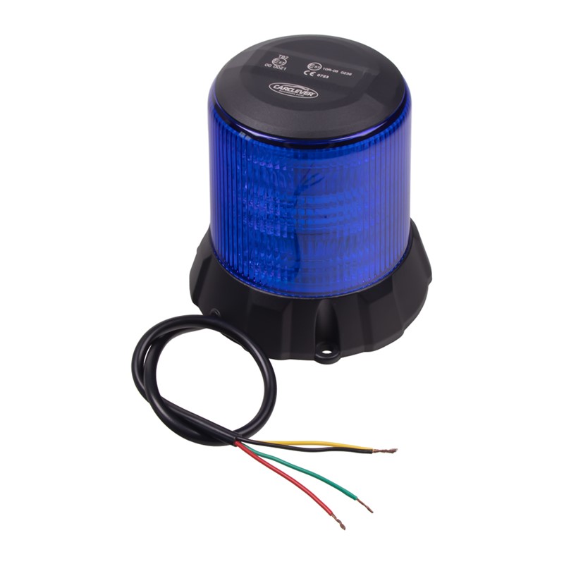 Profesionální robustní modrý LED maják s černým hliníkovým obalem a výrazným výstražným efektem. Určen pro pevnou montáž pomocí šroubů.