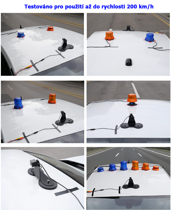 Testováno pro použití s magnetem až do rychlosti 200 km/h za podmínek umístění na čistou a suchou plochu střechy.
