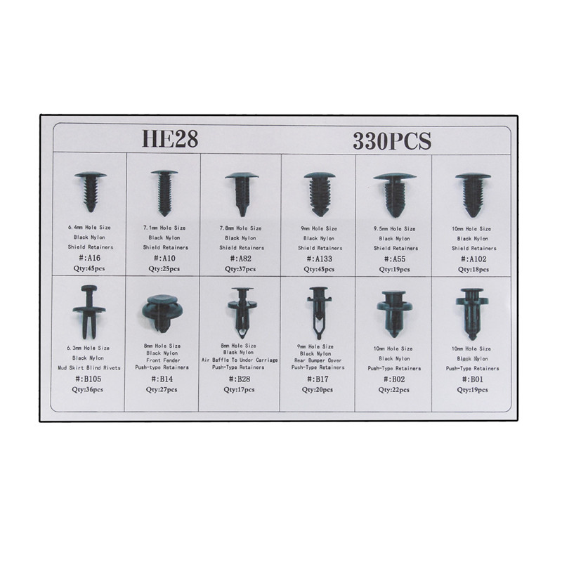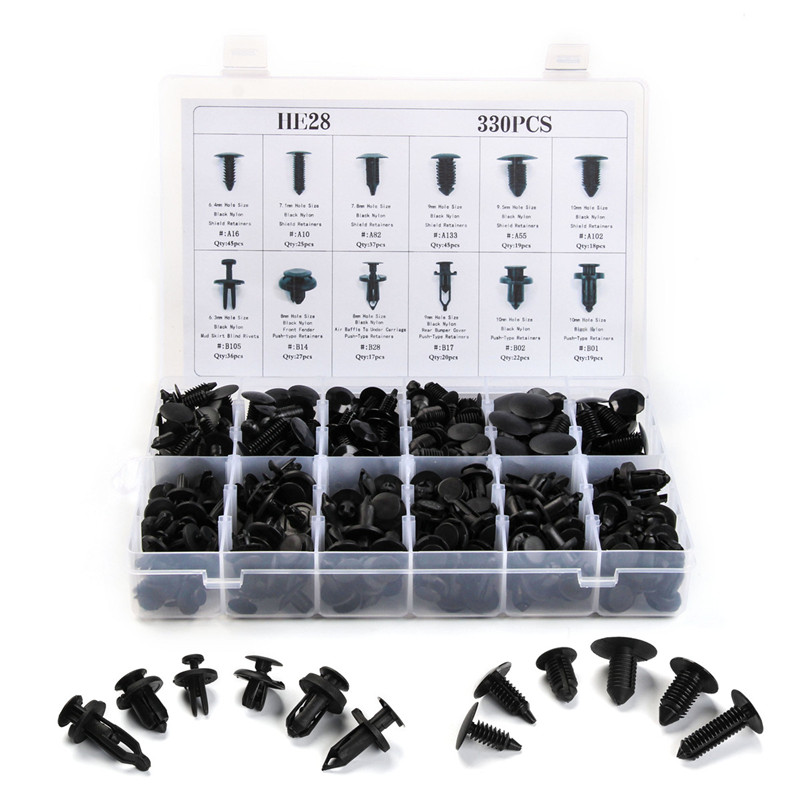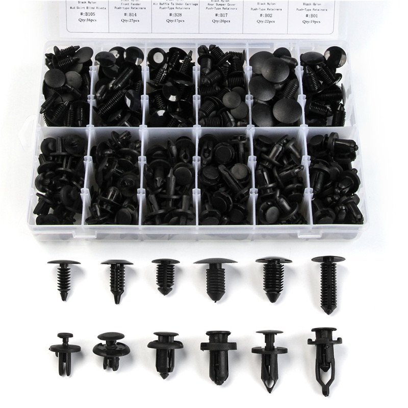 Sada plastových příchytek, používají se při opravách a instalacích, kdy většinou dojde k poškození původních příchytek na upevnění plastů, obložení v interiérech i exteriérech automobilů.