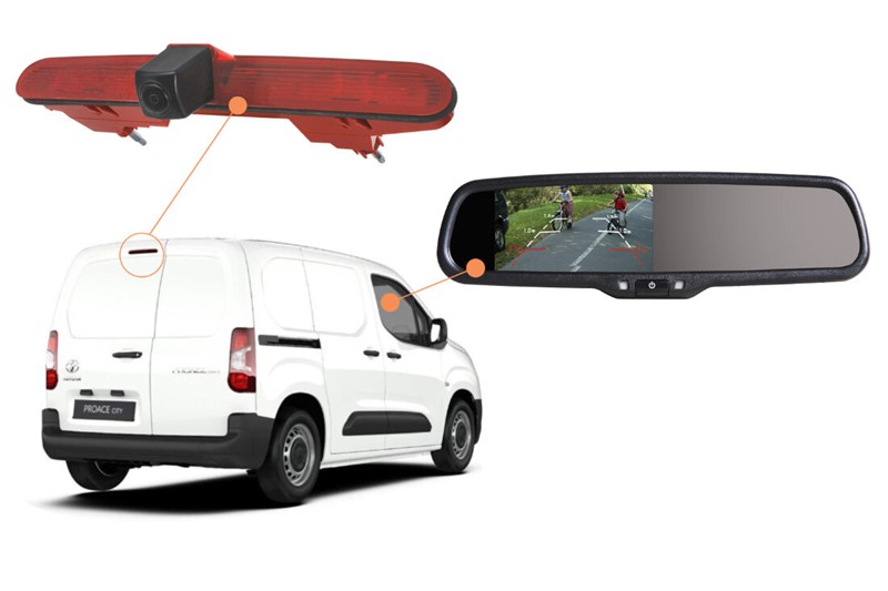 Monitor umístěný ve vnitřním zpětném zrcátku slouží pro zobrazení obrazu z parkovací kamery nebo pro zobrazení obrazu DVD přehrávače. Zrcátko je umístěno na čelním skle na místě originálního zrcátka. Snadná instalace bez zásahu do interiéru automobilu.