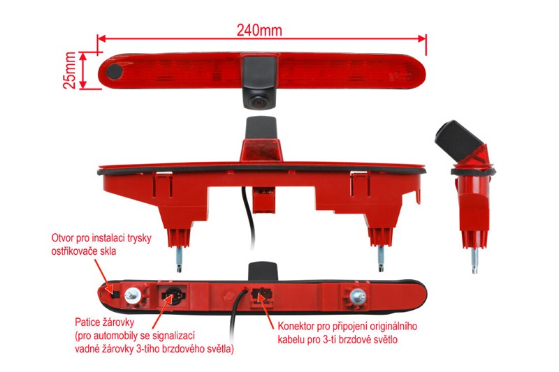 Kamera je umístěna ve 3-tím brzdovém světle umístěném zadních dveřích automobilu.