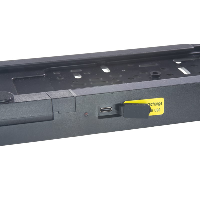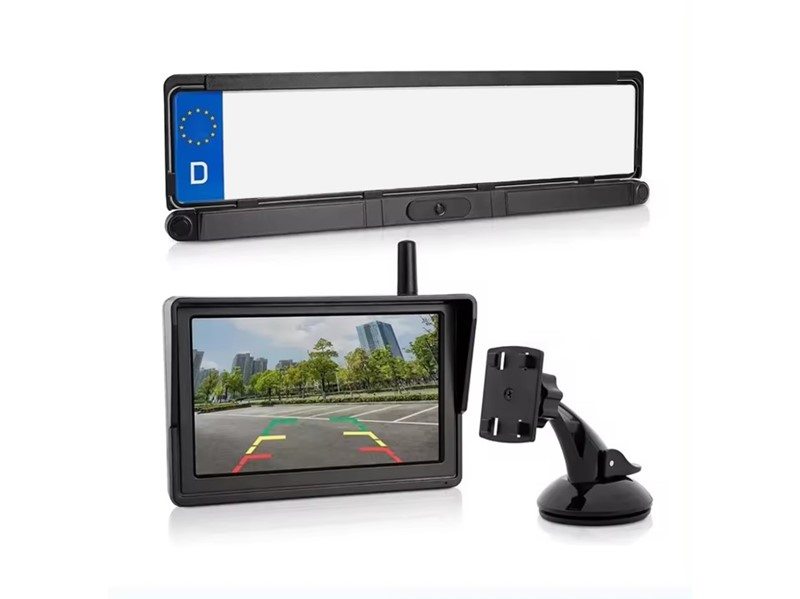 Sada LCD monitoru 5" a kamery s 2 čidly integrované do SPZ rámečku se solárním napájením s bezdrátovým digitálním přenosem signálu.