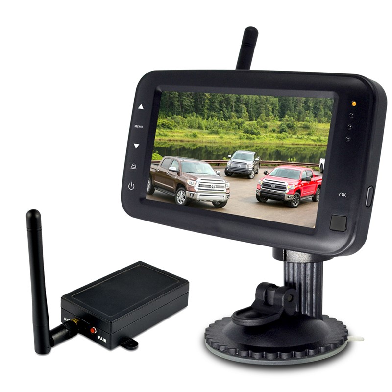 Sada LCD monitoru 4,3" s bezdrátovým digitálním přenašečem (transmitter) signálu. Digitální kódovaný přenos signálu zajišťuje velmi kvalitní přenos signálu, odolný jakémukoliv rušení a výpadkům. Hlavní výhoda tohoto systému spočívá ve velmi jednoduché montáži bez nutnosti tažení kabelů a možnosti napárování 1 kameru.