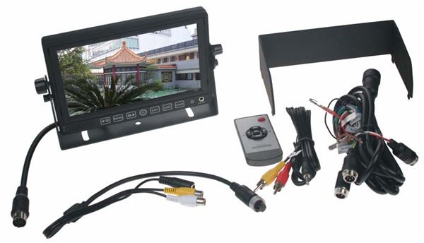 V balení je LCD monitor + kamera + 15m propojovací kabel 4-PINový + dálkové ovládíní. LCD monitor 7" s protisluneční clonou, širokým úhlem pohledu a displej s vysokým rozlišením.