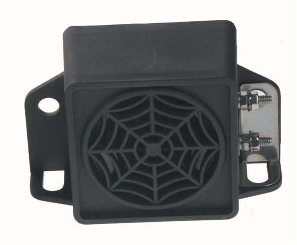 Krátký popis Akustická signalizace couvání, šroubovací svorky.  Venkovní provedení.   Technické parametry - napájecí napětí: 12-80V - akustický tlak ve vzdálenosti 1 m: 107 dB - rozměry cca: 41 x 102 x 68 mm (h x š x v) - homologace ECE R10