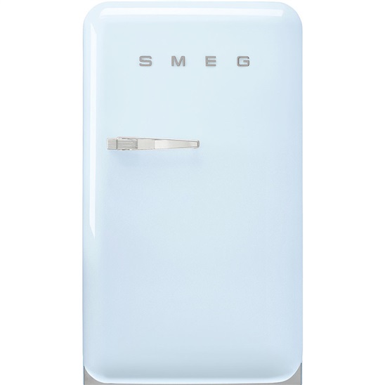 50's Style, automatic defrost, barva pastelově modrá, panty napravo, vnitřní mrazák, LED-vnitřní osvětlení, celková kapacita 122 l, en.třída E, 37 db(A)/C