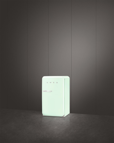 50's Style, automatic defrost, barva pastelově zelená, panty napravo, vnitřní mrazák, LED-vnitřní osvětlení, celková kapacita 122 l, en.třída E, 37 db(A)/C