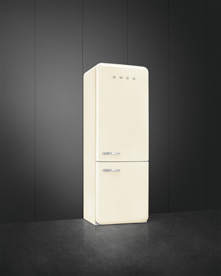 50's Style, No Frost, invertor, barva krémová, panty napravo, přihrádka s nulovou zónou Life Plus 0 °C, šuplíky na válečkových pojezdech, Multifflow-recirkulace chladného vzduchu, LED-vnitřní osvětlení, interní displej, aktivní ionizátor, celková kapacita 481 l, en.tříd