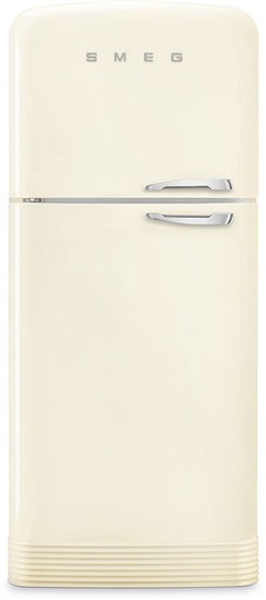 50's Style, No Frost, invertor, barva krémová, panty napravo, přihrádka s nulovou zónou Life Plus 0 °C, šuplíky na válečkových pojezdech, Multifflow-recirkulace chladného vzduchu, LED-vnitřní osvětlení, interní displej, aktivní ionizátor, celková kapacita 524 l, en.tříd