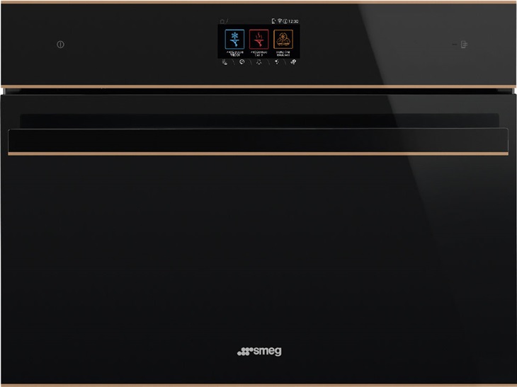 Kompaktní zchlazovací jednotka Blast-Chiller, 45 cm, Eclipse-tmavé sklo, dekorativní lišty z mědi, šokové mrazení, chlazení lahví, vaření za nízkých teplot, 4,3“ TFT-barevný displej, tepelná sonda, 52 aut.programů, 5 chladicích / 5 ohřívacích funkcí (od -35°C do +75°C), Ready to Eat, čisticí cyklus