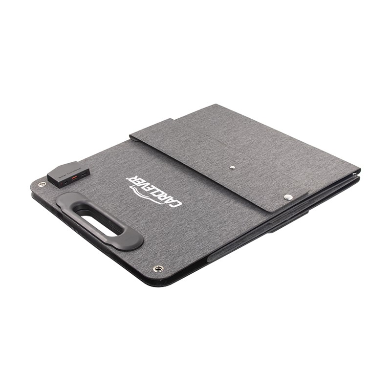 Skládací solární panel se zpevněnou konstrukcí (plná laminace) je určený pro nabíjení 12 V baterií, bateriových nabíjecích stanic, notebooků, mobilních telefonů, powerbank a jiných zařízení s USB konektorem.